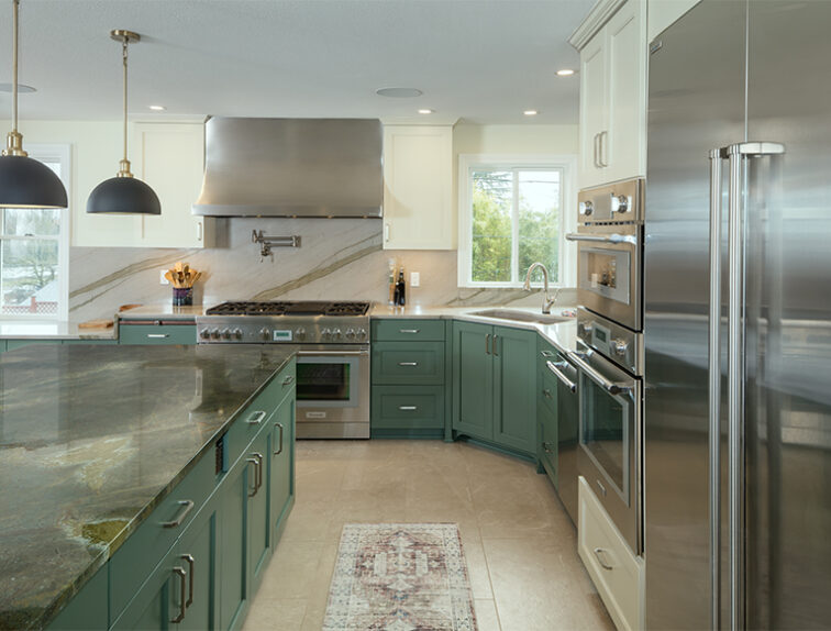 Can you believe that this Kitchen used to be four separate rooms with a closet in the center that housed the furnace? Scroll through our slideshow to see the 'before' photos with their matching 'afters'! Years ago, this client came to us, wanting to explore the idea of demolishing the house and starting new. After further discussion, we decided the best decision was a Kitchen remodel to make their home exactly as they wanted, housing the clients and her mother. The themes of this Kitchen truly reflect the beautiful outdoor garden that the client loves to tend to in her spare time, blurring the line between the outdoor and indoors.