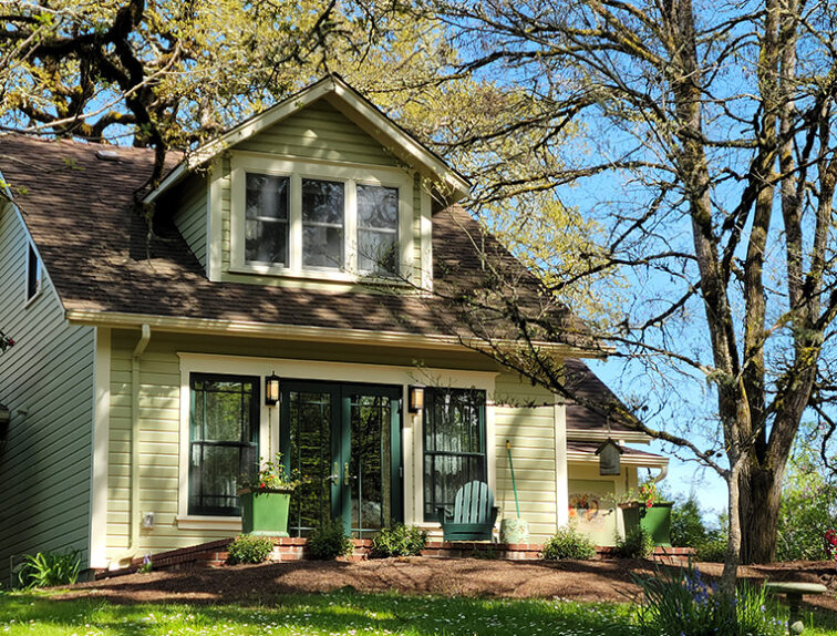 This quaint 800 sqft house located in Central Corvallis contained only 1 Bathroom to share between the family of four living in this home, and thus was in major need of a second Bathroom. We added several feet onto the back of the house, with half of the addition containing the new primary bathroom and the other half containing a covered porch. To maximize floor plan space, we installed a recirculation pump instead of a dedicated water heater. This gorgeous new bathroom not only provides increased functionality in the home, but is also an oasis for the homeowners with the double faucet sink in the vanity, natural daylight, tiled shower with a frameless glass barn door slider, and material selections that thoughtfully blend relaxing beach themes and cozy farmhouse styles.