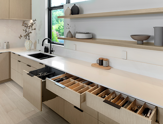 Custom Drawer Organizers & Paneled Dishwasher